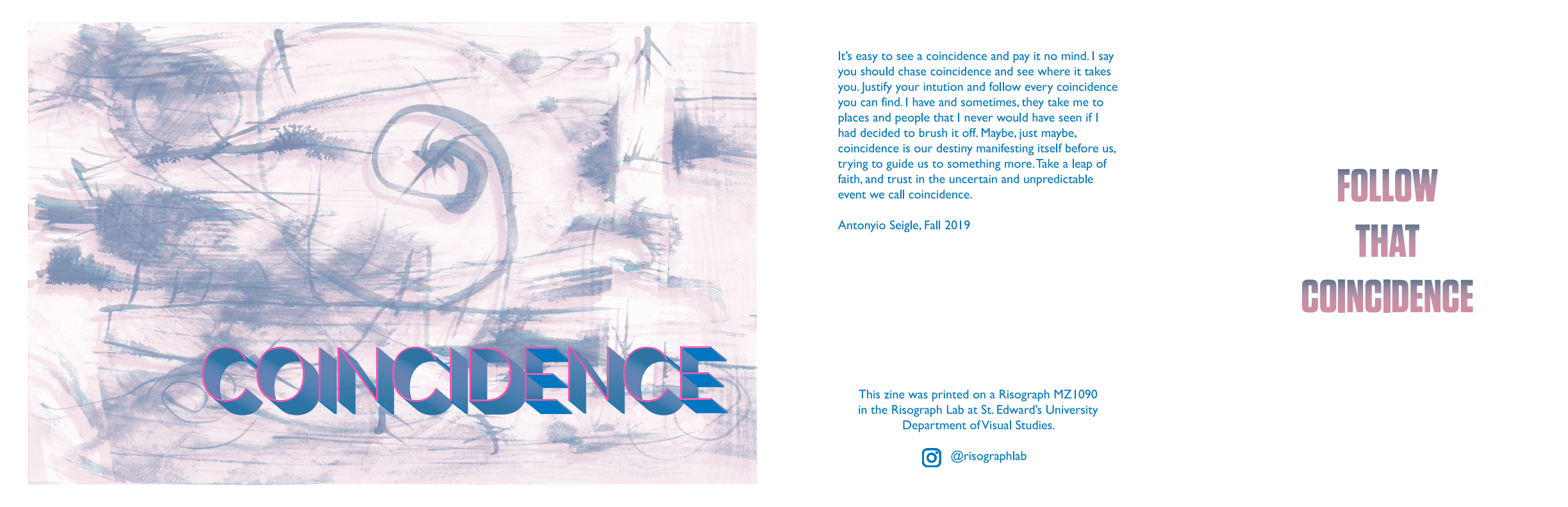 This Zine was a risograph print that described my outlook on coincidence, and following instinct.